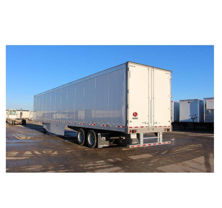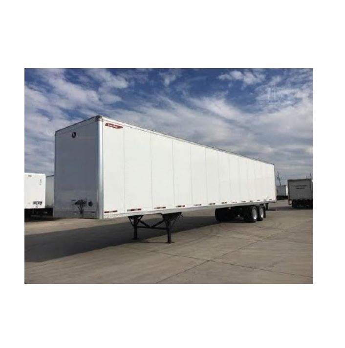 Semi-remorque fourgon sec de 53 pieds, type caisse, pour le transport de marchandises, prêt à être expédié.