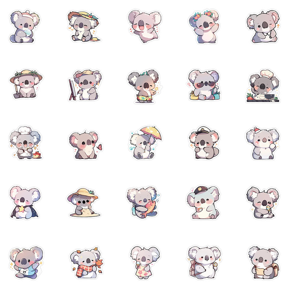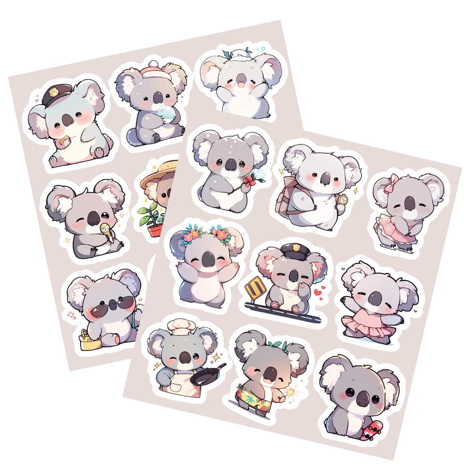 54 pièces/feuille dessin animé Koala autocollants Pack personnalisé étanche vinyle Animal mignon Koala ours autocollants imprimer Kawaii Journal Scrapbook