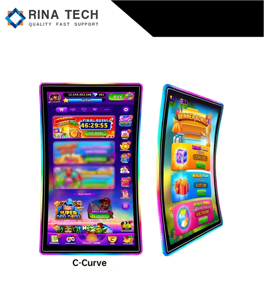 55 "/65" 4K personnalisé polyvalent tout-en-un 43 ''boîtier de machine d'arcade-panneau de manette d'écran vertical incurvé par Rina Tech