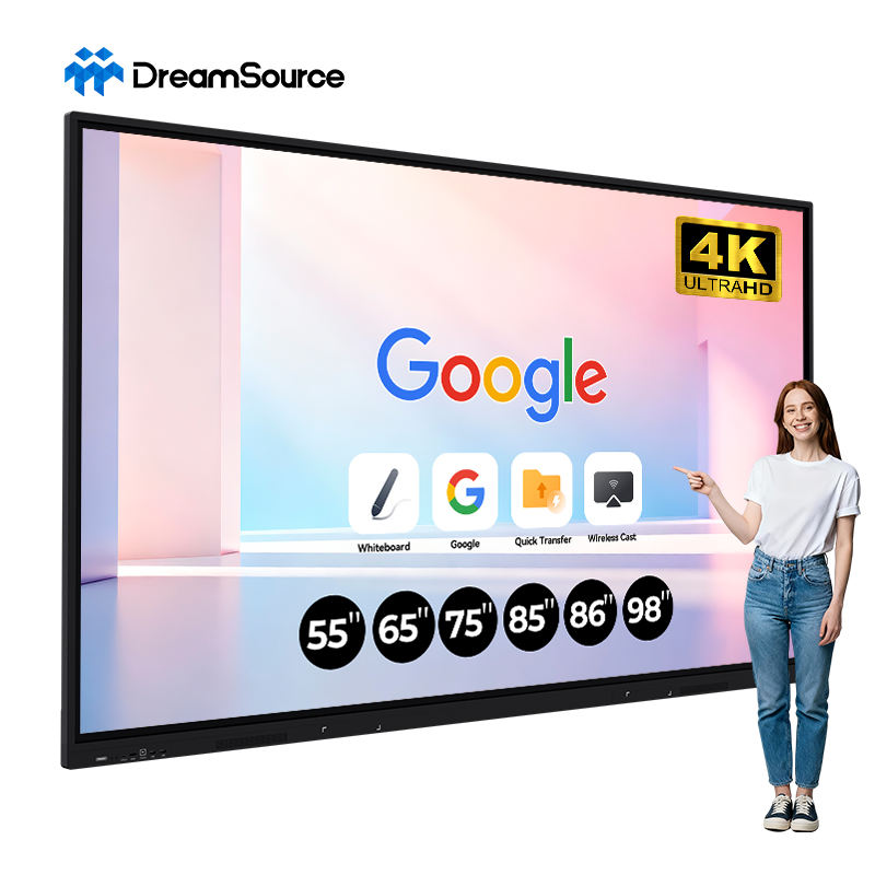 Tableau blanc interactif numérique à écran tactile IR 40 points de 55, 65, 75 et 86 pouces avec système d'exploitation Android/Win10/11 pour l'éducation, couleur noire