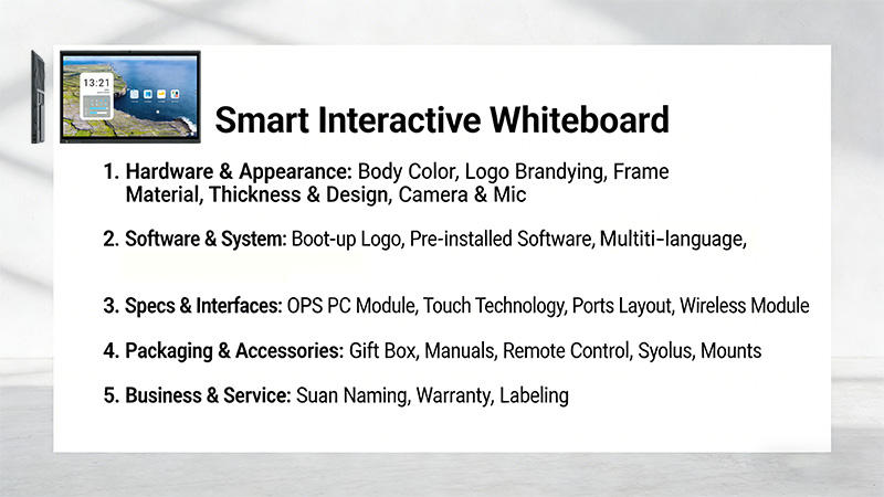 Tableau blanc interactif de 55, 65 et 75 pouces pour l'éducation : écran LCD 4K anti-reflets, tactile 20/40 points et haute visibilité en classe