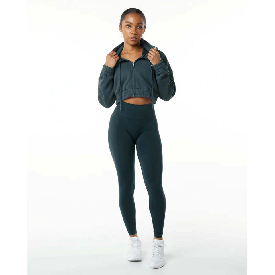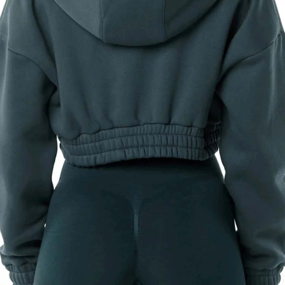 55% Cotton 45% Spandex Drop Shoulder Style Oversized Cropped Fit Ocean Women Classic Capital Full-Zip Crop Hoodie