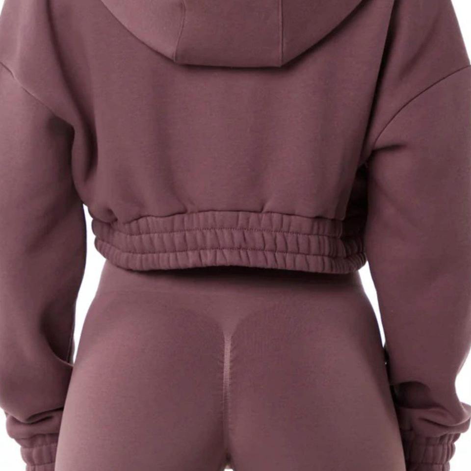 55% coton, 45% Spandex Goutte Épaule Style Surdimensionné Coupe Courte Automne Femmes Classique Capital Full-Zip Crop Hoodie Nouveau Style