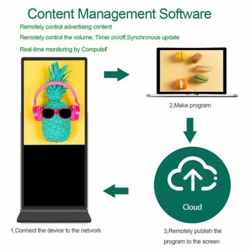 Kiosque d'affichage vidéo Android ultra-mince de 55 pouces Signalisation numérique verticale verticale autonome pour centre commercial Publicité Tope Touch