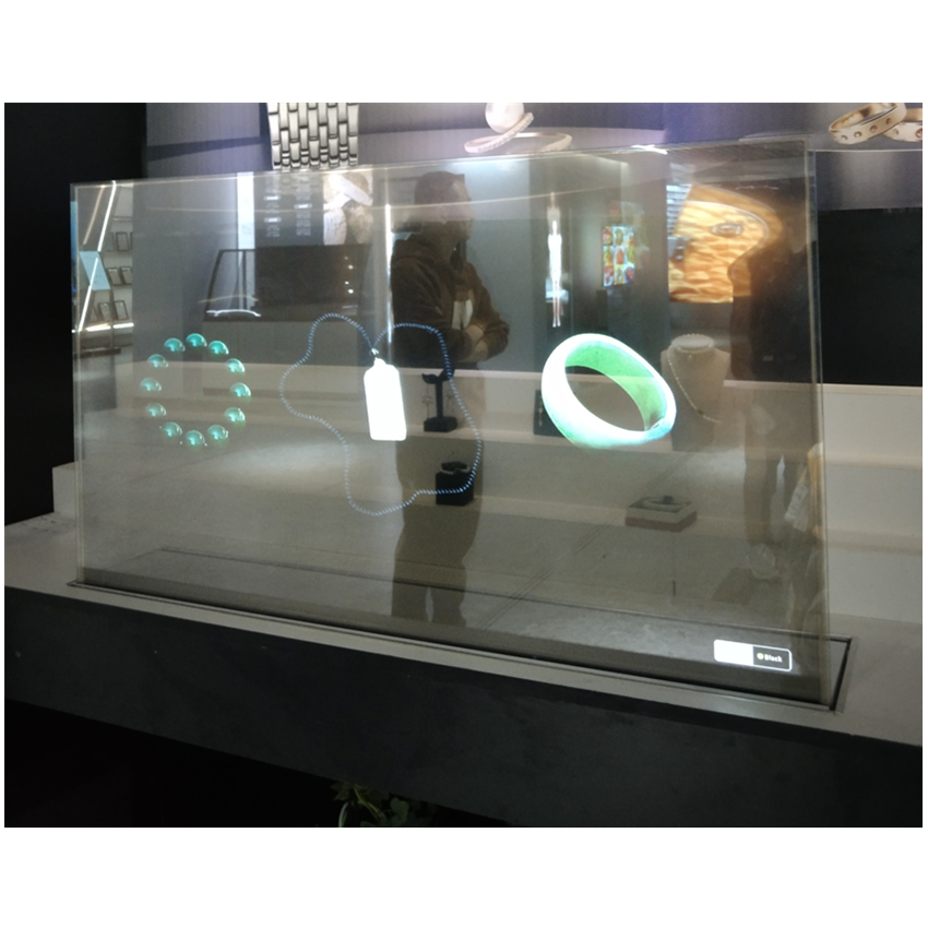 Écran tactile interactif de 55 pouces, écran OLED transparent intelligent pour la publicité, les magasins de détail, les ascenseurs, les expositions, les bijoux, le luxe