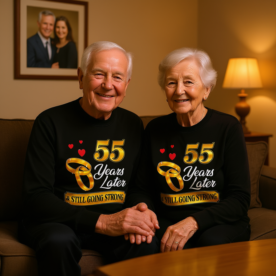 55 ans plus tard, toujours en pleine forme, t-shirt à manches longues, cadeau pour la 55e anniversaire de mariage