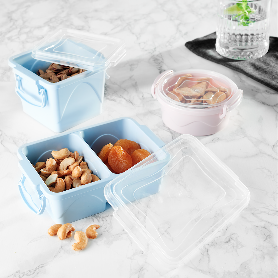 Mini boîte à lunch profonde en plastique sans BPA de 550ml avec couvercle et poignée compacte et empilable pour le stockage des aliments
