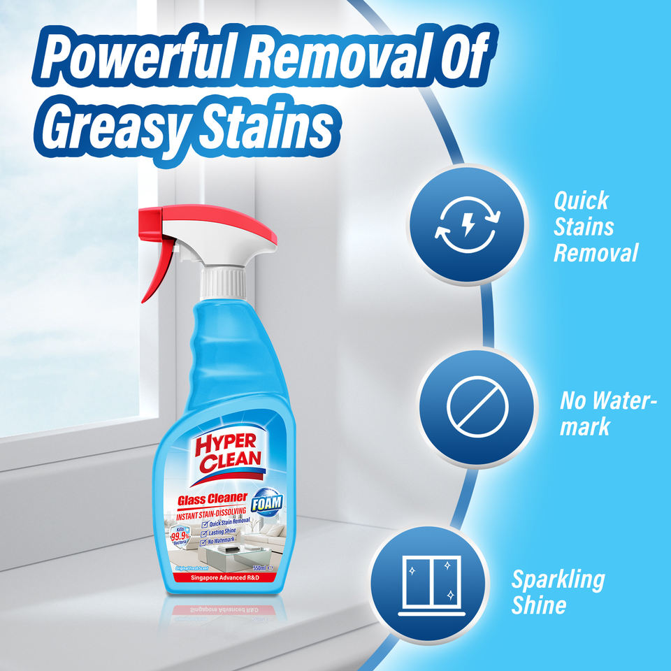 Hyperclean Fresh 550ml Détergent en spray pour vitres de cuisine et de salle de bain avec 5%-15% ingrédients actifs