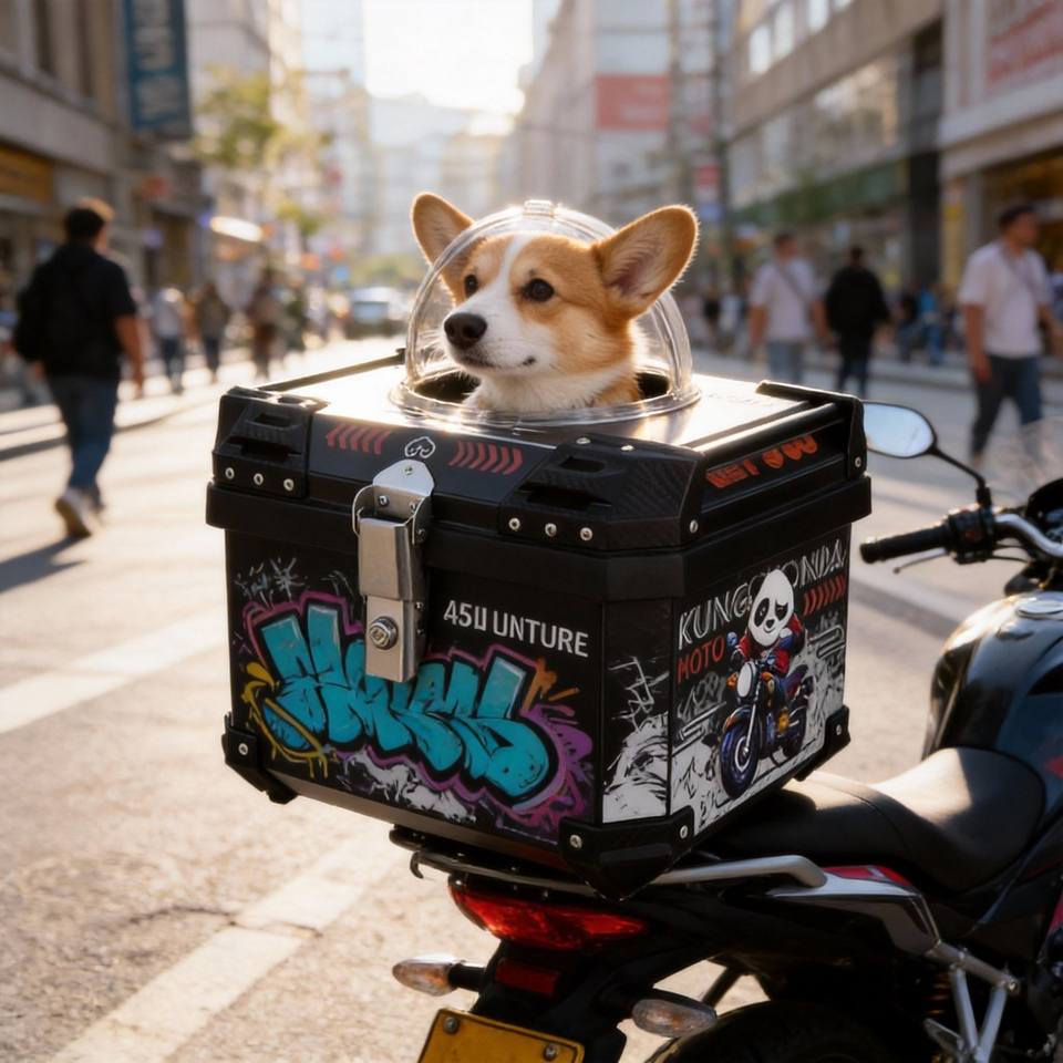 Caisse de transport pour animaux de compagnie 55L en PP étanche pour moto, grande capacité, pour 2 petits animaux, noir-blanc graffiti, 8 couleurs, fixation rapide