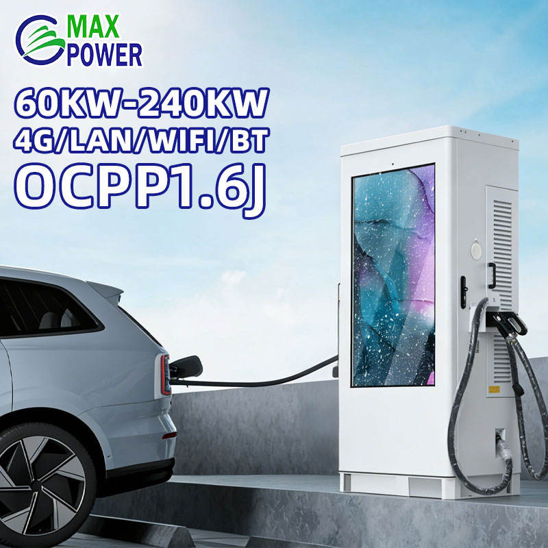 Écran publicitaire 55 pouces, station de recharge pour véhicules électriques à double borne, 60 kW CCS2 GBT DC, borne de recharge ultra-rapide pour voitures électriques