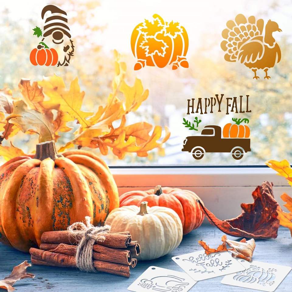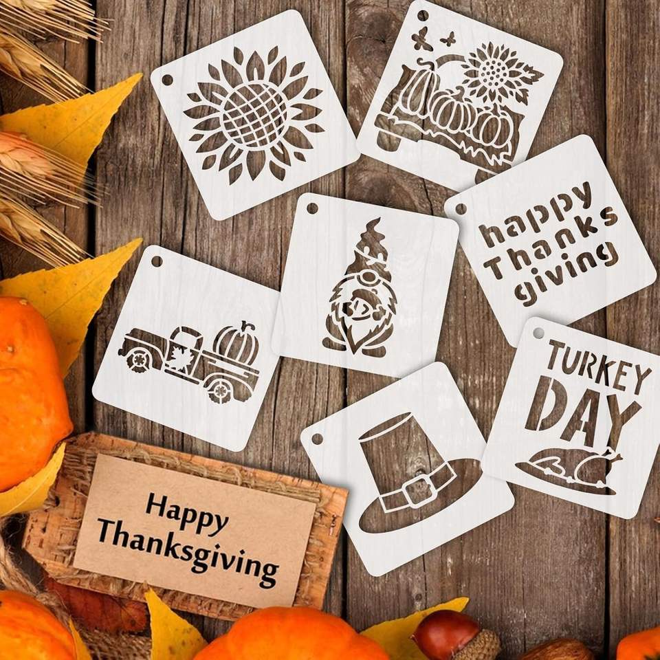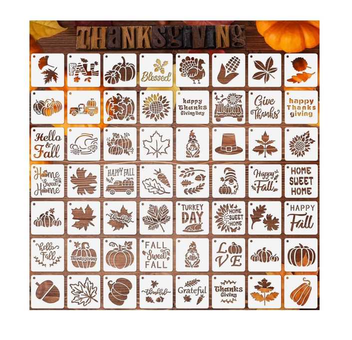 Paquet de 56 pochoirs de Thanksgiving d'automne petits motifs blancs de 3 pouces pour bricolage ornements en bois tissus décorations de fenêtre pour la peinture