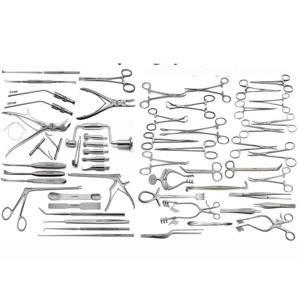 Ensemble de craniotomie en acier inoxydable de 56 pièces | Instruments chirurgicaux orthopédiques de base | Kit chirurgical de haute qualité | Manuel