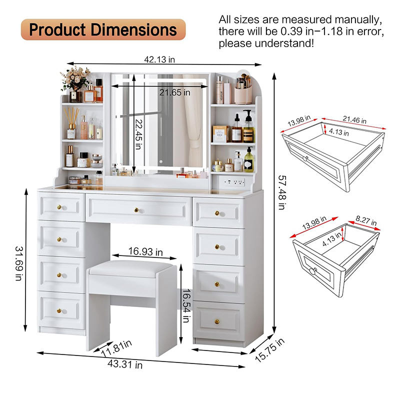Nom du produit:Coiffeuse à miroir LED, Table de maquillage