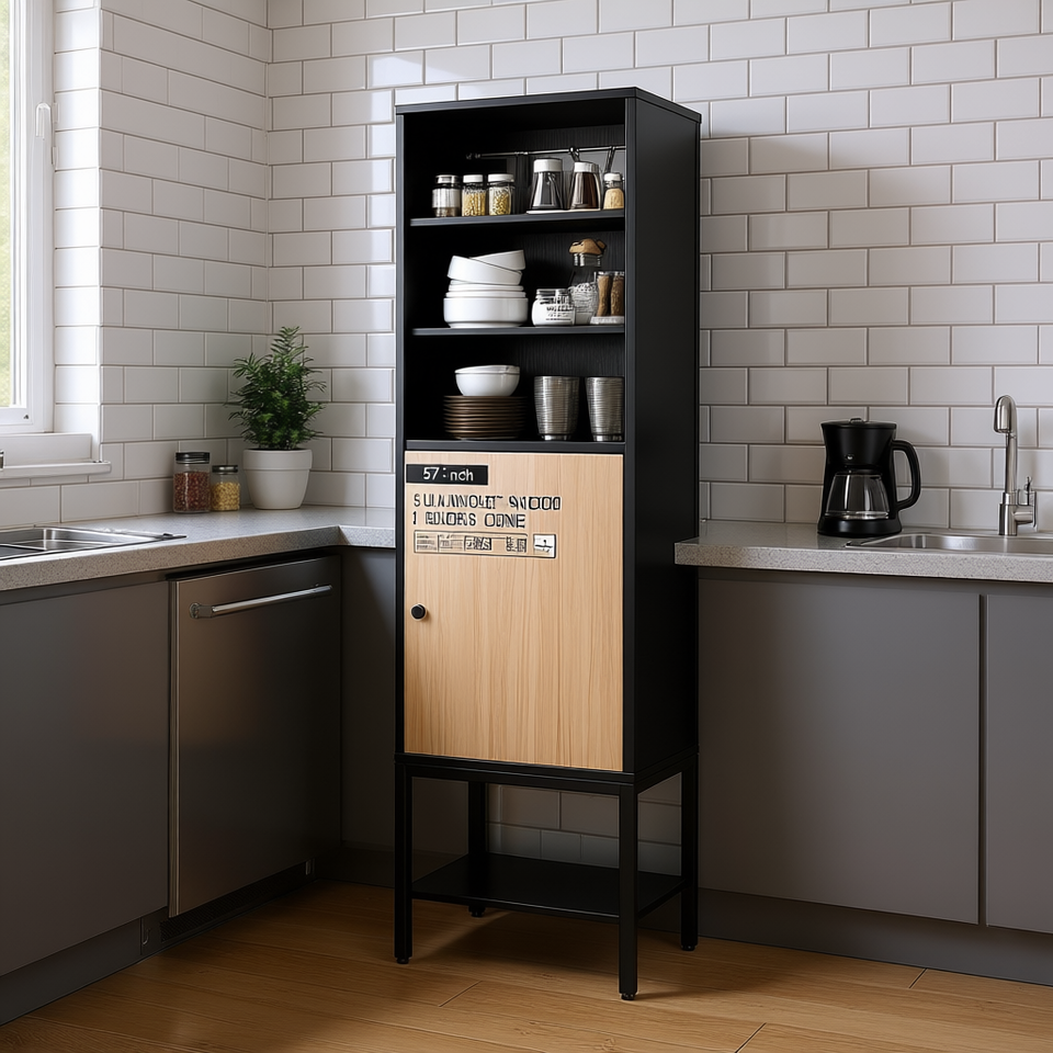 Armoire haute étroite de 57 pouces à 1 porte et 4 étagères pour l'organisation de la cuisine