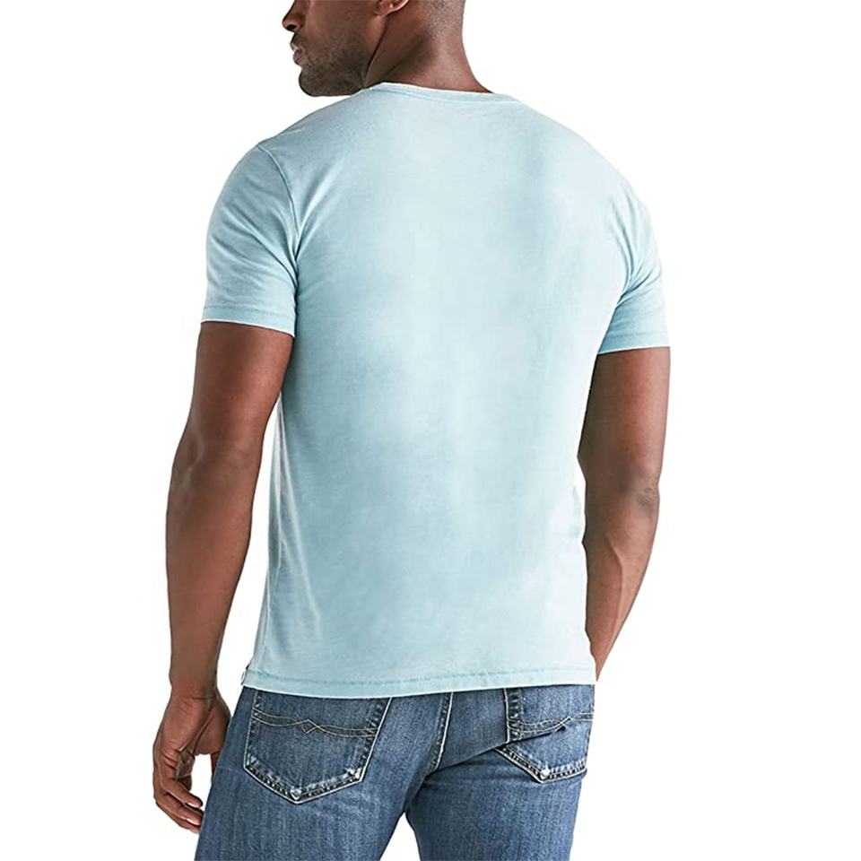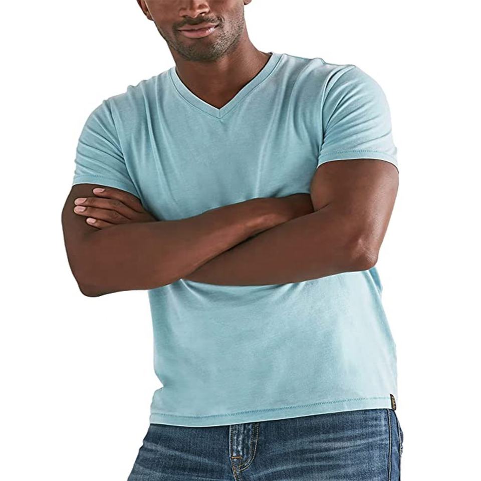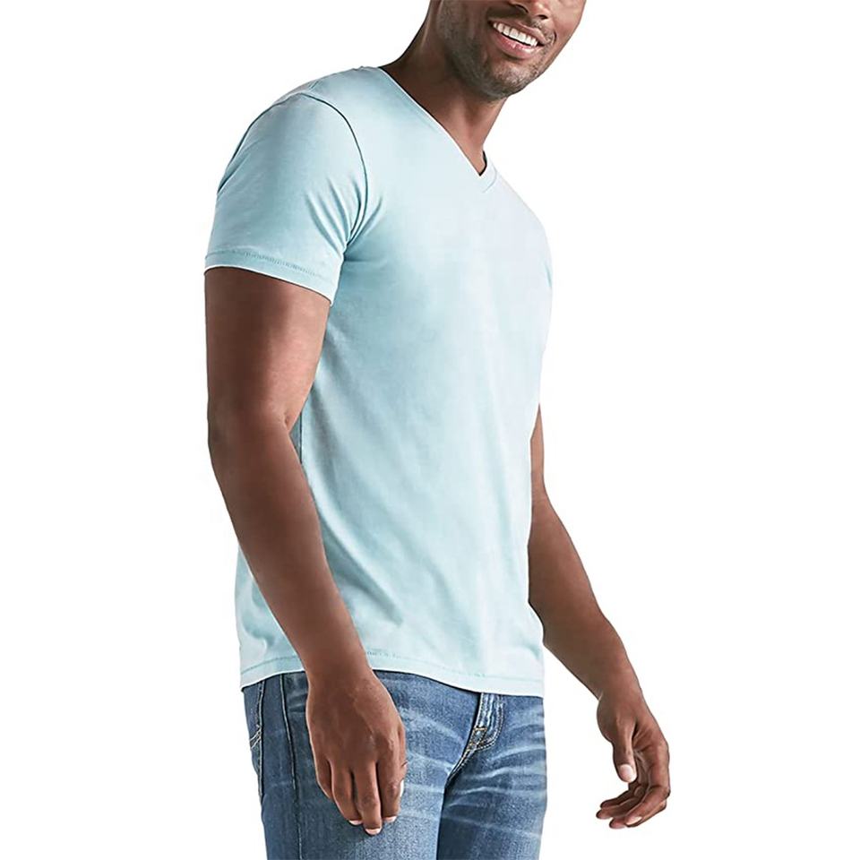 T-shirt unisexe en coton biologique à col en V, logo personnalisé sur le devant, tissu tricoté, écologique et respirant, fabricant OEM