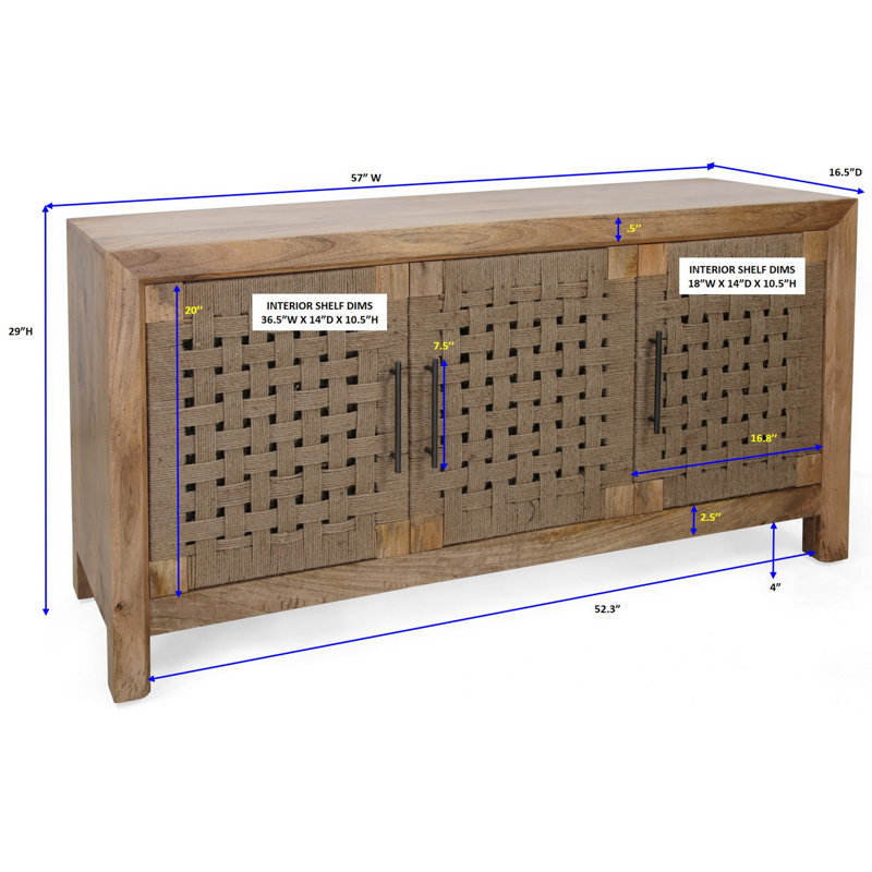 DreamCraft 57'' Solid Wood Sideboard-Vietnam Crafted Elegant and Durable Furniture Piece