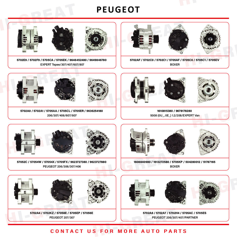 Ensemble d'alternateur de systèmes électriques automatiques 5705-5V/57055V Alternateur automatique 12V pour PEUGEOT 206