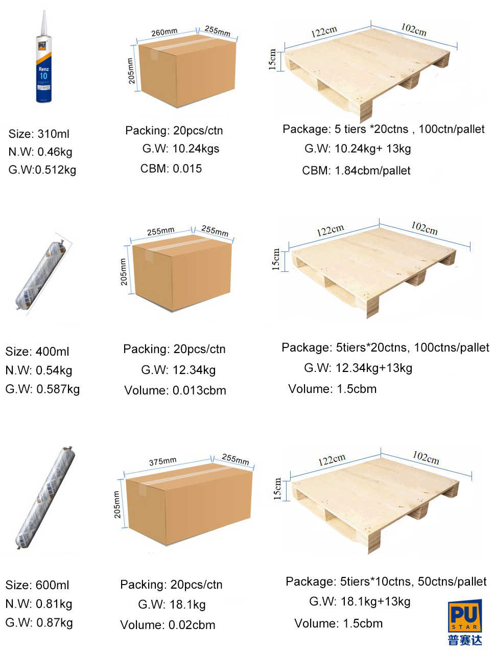 310ml cartridge;20pcs/carton;carton size:260*215*265mm