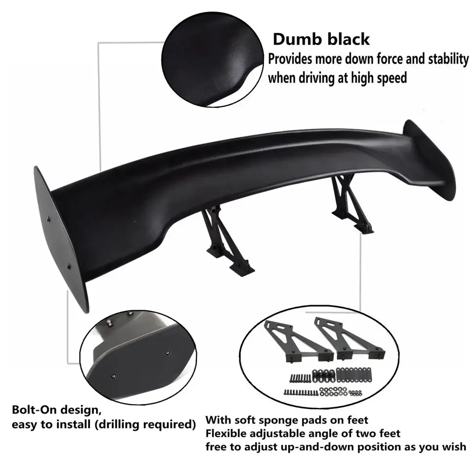 Aileron de coffre arrière universel pour voiture de course sportive, 57 pouces (145 cm), en aluminium noir GT double rangée, pour VW, pour BMW