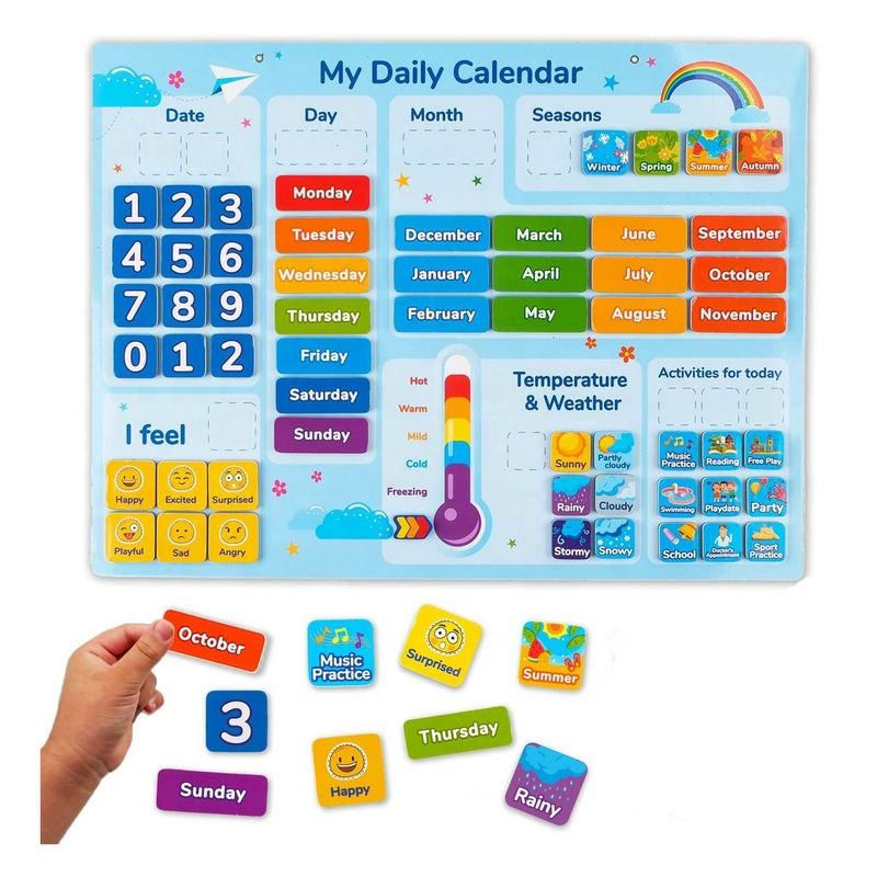 Calendrier magnétique quotidien pour enfants, 58 pièces, mon premier calendrier quotidien pour enfants, tout sur aujourd'hui, tableau des jours de la semaine, calendrier pour enfants