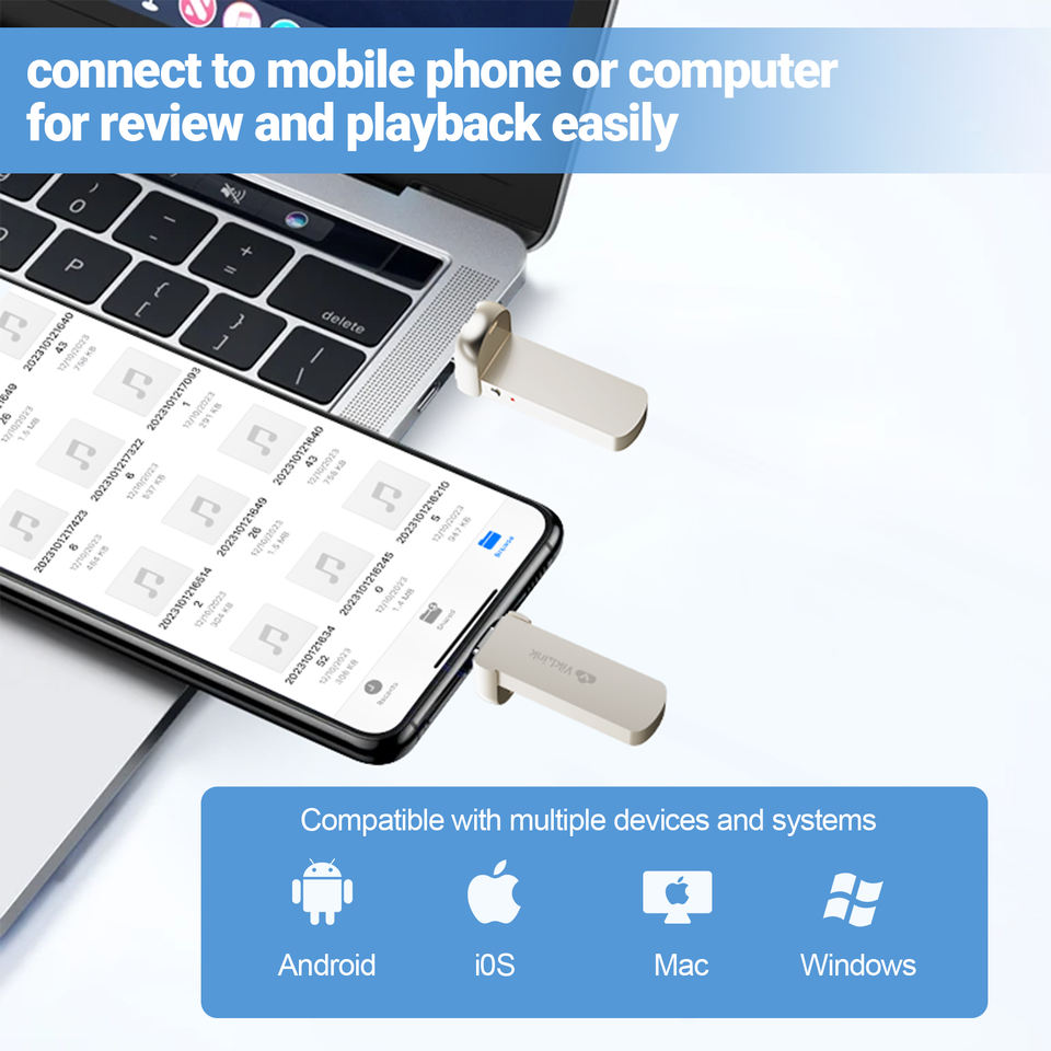 580H Type-C Mini USB Metal Voice Recorder Capacité de 64 Go Plug-In direct Opération en un clic Dispositif miniature en aluminium Format WAV