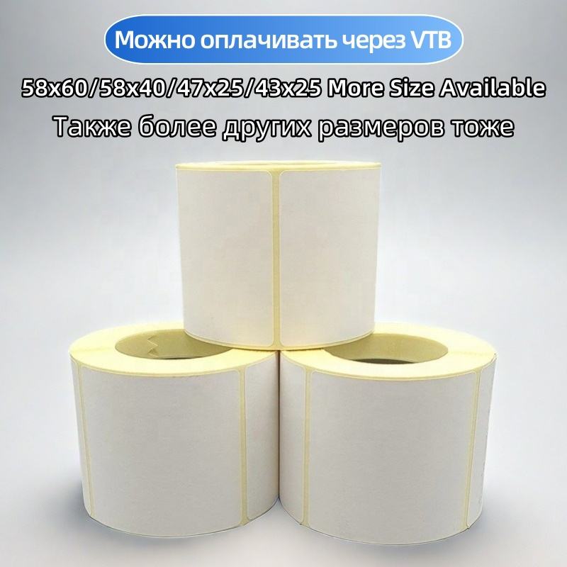 Rouleau d'étiquettes thermiques écologiques 58x40MM, vente en gros d'usine, étiquettes vierges autocollantes pour balances de supermarché, fabricant d'autocollants codes-barres