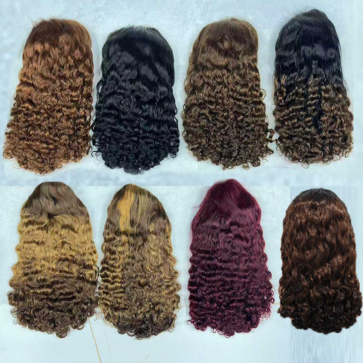 Promotion 59$ 73$ Letsfly Romance Perruques de cheveux humains bouclés, Perruques bob frontales en dentelle 13x4, 16 18 pouces, couleur ombrée, effet mouillé et ondulé