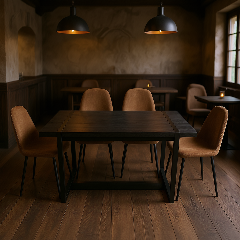 Ensemble de table à manger moderne 59 pouces, plateau rectangulaire en MDF, base en métal, avec 4 chaises en suède pour usage en restaurant