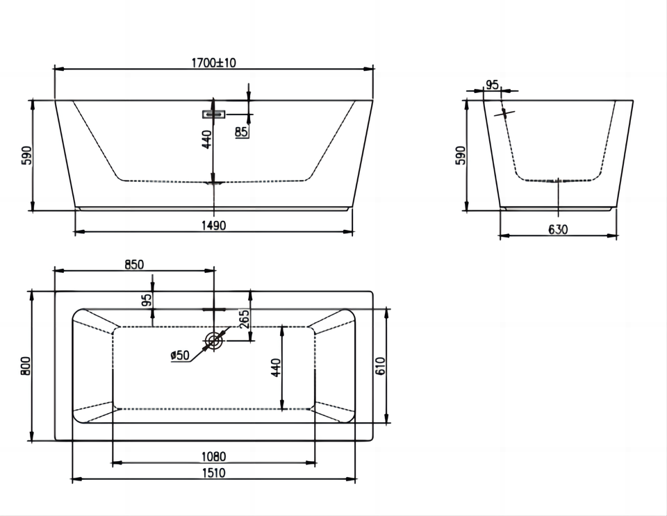 59" Modern Soaking Deep Bath Tub Rectangular Freestanding Acrylic Bathtub for Hotels