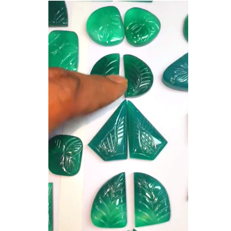 Keyword:Natural Green onyx leaf, Carved leaves Green onyx loose gemstone