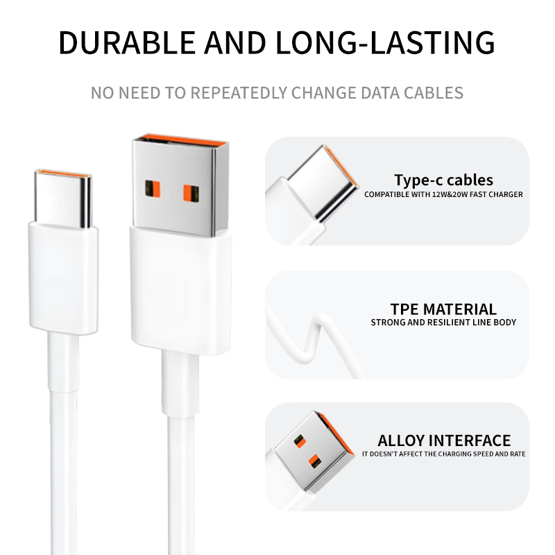 Câble USB Type-C à charge rapide 5A 3A pour ordinateur, appareil photo et écouteurs - Recharge mobile avec transfert de données, plusieurs longueurs (1M/2M)