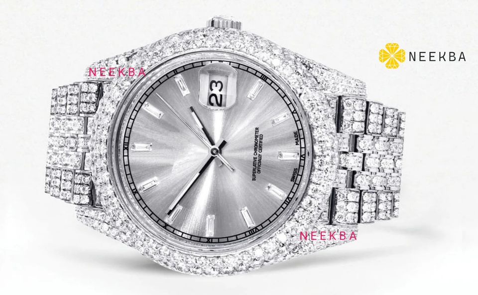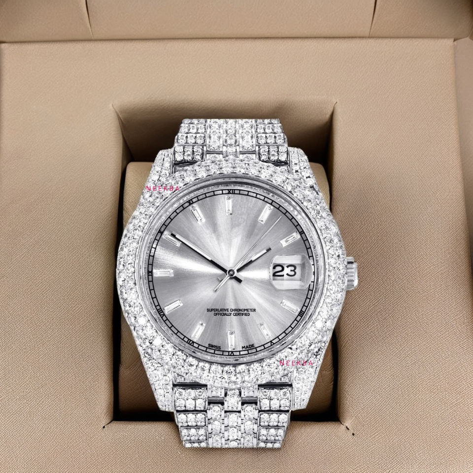 Montre diamant automatique la plus vendue du vendeur indien avec cadran Sunburst, montre en moissanite à buste bas avec ceinture immobile de haute qualité