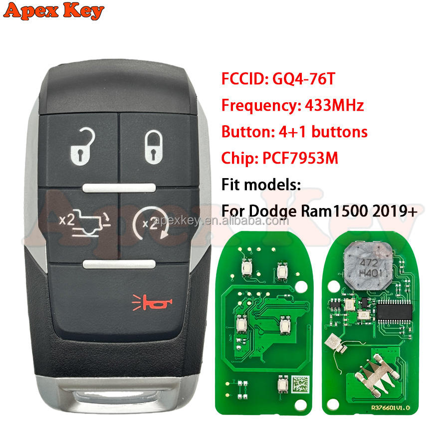 Clé intelligente de rechange à 5 boutons 433,92 MHz avec puce 4A GQ4-76T 68374993 68375455 68365299 pour télécommande Dodge RAM 2500 3500 4500 5500