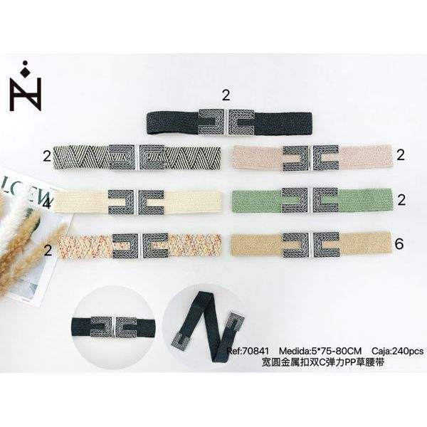 Ceinture élastique en PP à boucle métallique ronde de 5 cm de large, double C, pour le ventre