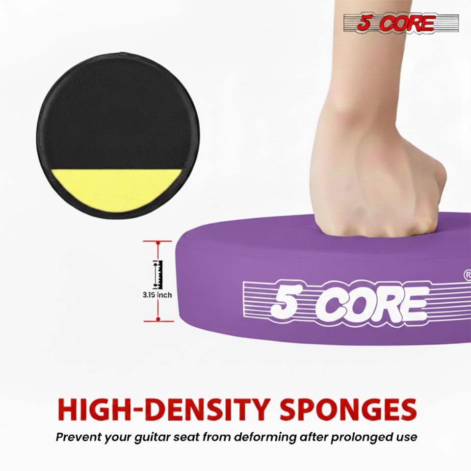 Tabouret de guitare pliable robuste 5Core, chaise rembourrée de 3,15 pouces avec repose-pieds intégré et support pour la pratique musicale