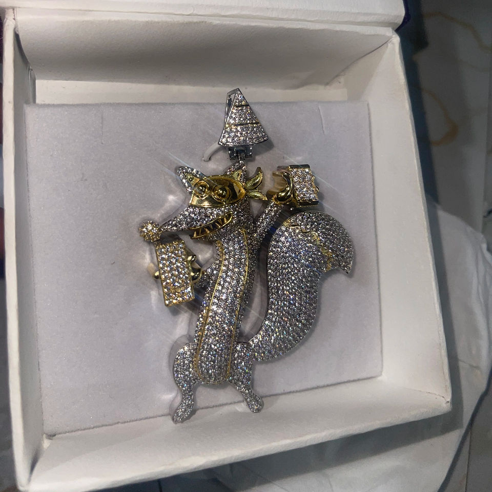 Pendentif tête de lion pour homme en moissanite coupe ronde 5 carats plaqué or blanc 14 carats