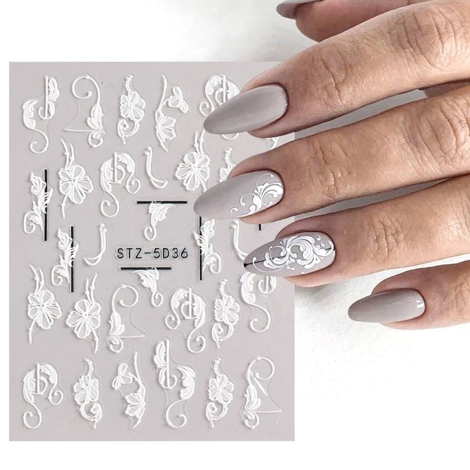 5D Acrylic Flowers Nail Stickers Decals White Lace Christmas Design Simple Floral Embossed Sliders DIY Nails Accessories Deco