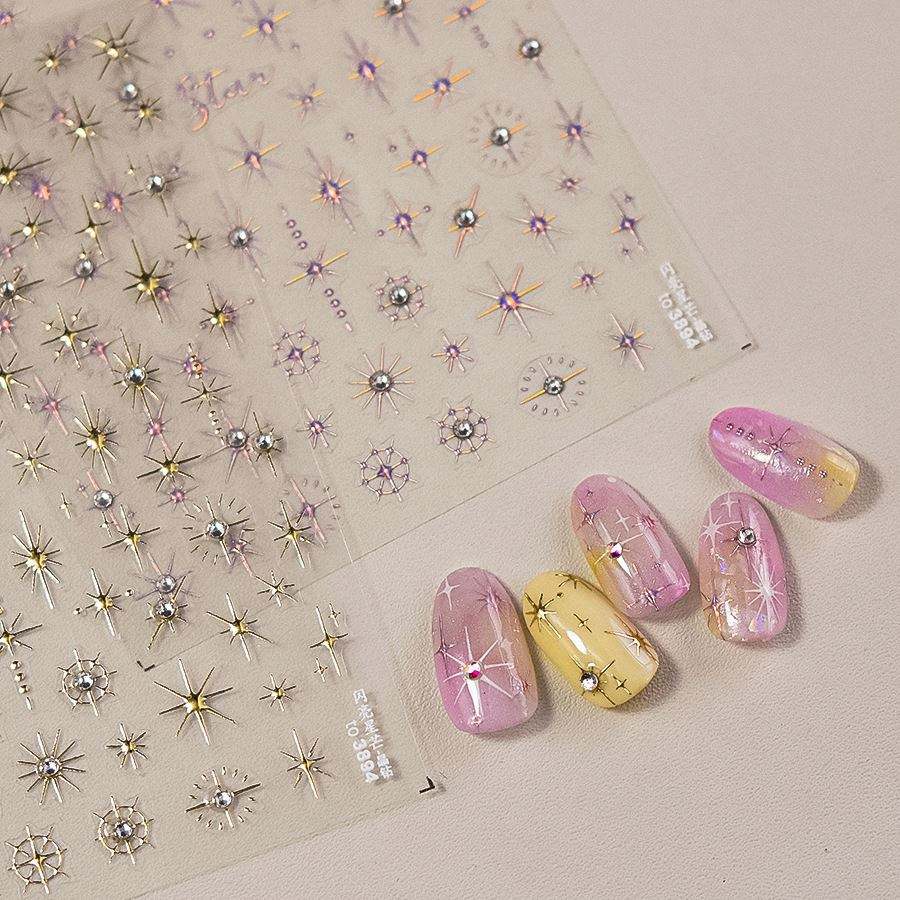 Autocollants pour ongles en cristal diamanté argenté rose 5D, autocollants pour ongles brillants, autocollants pour ongles autocollants, décalcomanies scintillantes étoilées