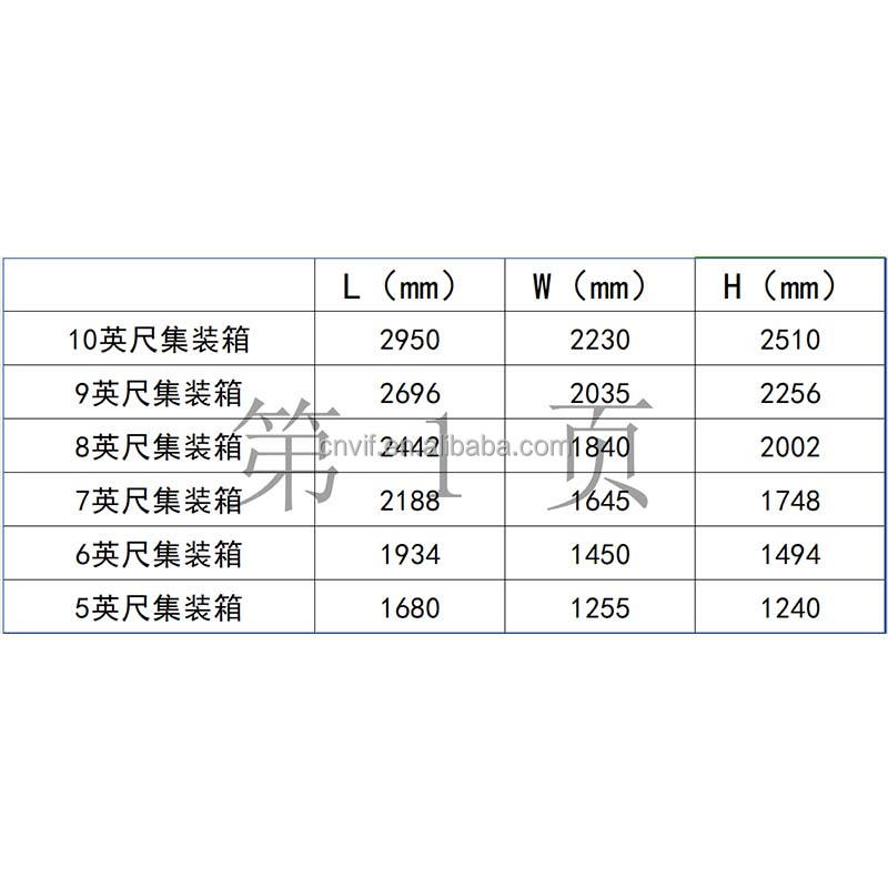 2830*2290*2385mm (déviation de 0-5mm)Dimensions Internes (L x W X H) (mm)