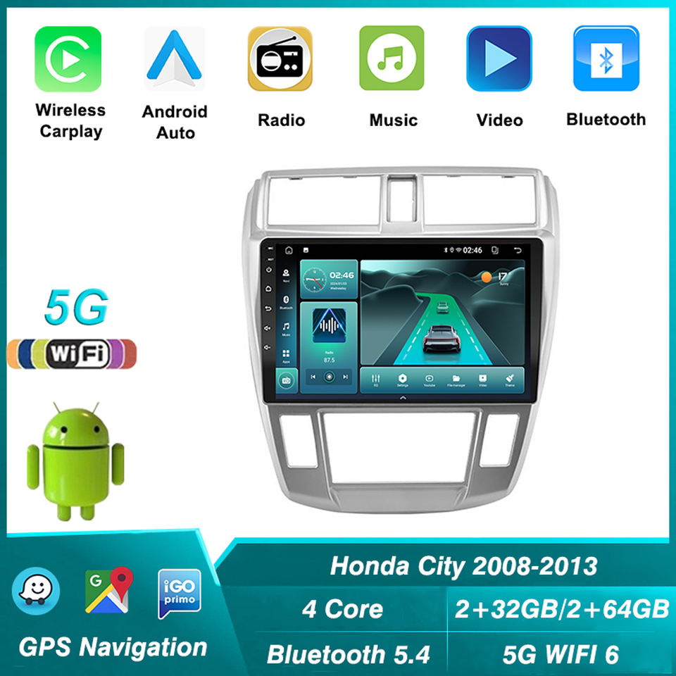 5G + 2.4G WIFI6 5.4 Android autoradio pour Honda City 2008 2010 -2013 lecteur vidéo multimédia Navigation GPS Carplay Auto