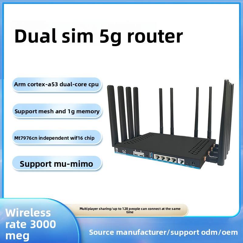 Routeur CPE 5G WIFI6 double bande 2,4 GHz 5,8 GHz haute vitesse 3000 Mbps double carte SIM niveau entreprise MT7981B 5GE ports WAN/LAN
