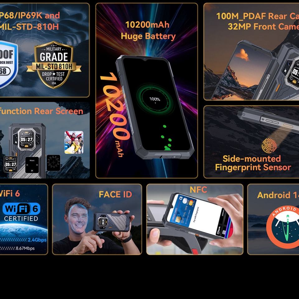 Smartphone robuste 5G, mobile 24+256 Go, Android 14, NFC, écran 6,72 pouces 144 Hz, 10200 mAh, 32+100 MP, Cubot King Kong X Pro