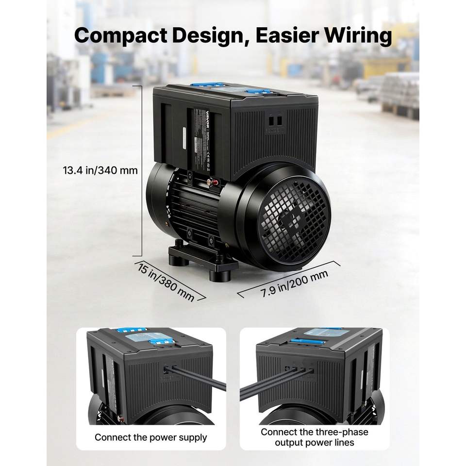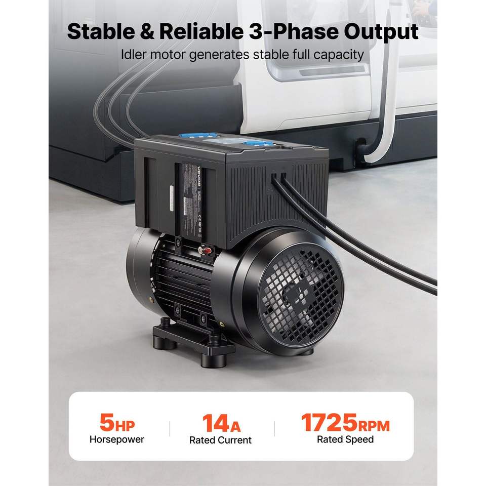 Convertisseur de phase rotatif 5HP 14A monophasé et triphasé 208-240V entrée/sortie, onduleur et convertisseur extensible pour une puissance accrue