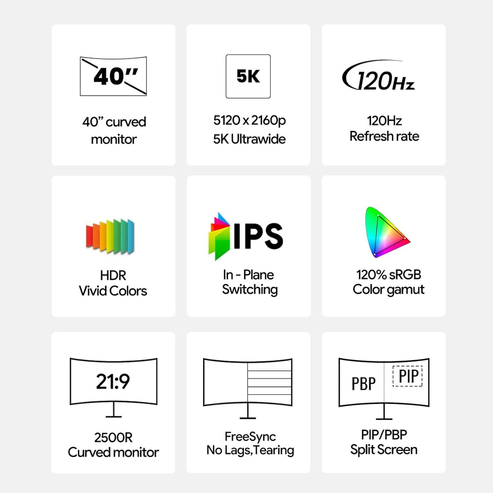 Moniteur 5K 5120*2160P 40 pouces ultra large PBP PIP écran d'ordinateur LED 2500R incurvé 75hz 120hz IPS 1ms LCD moniteur de jeu PC