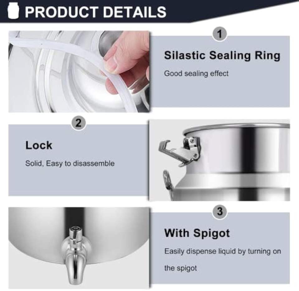 Boîte à lait 5L 304SS seau à thé boîte à huile en métal épaissie avec robinet 304ss couvercle scellé et poignée de transport stockage de boissons liquides