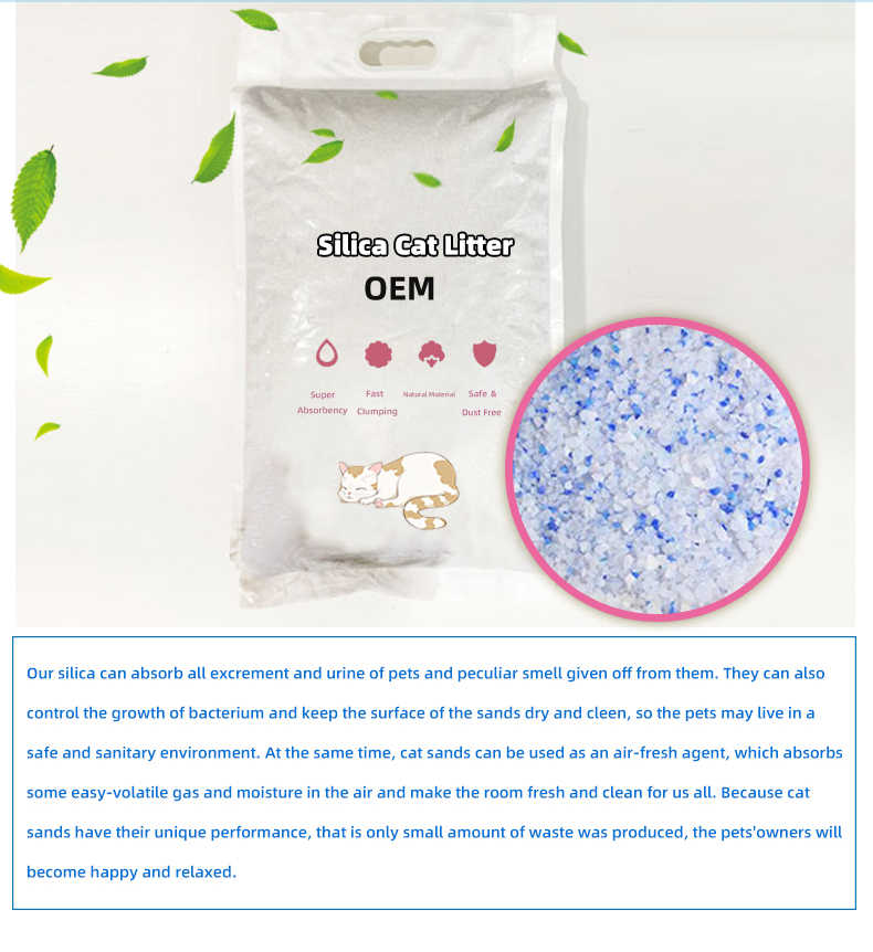 5L gros échantillon naturel sans poussière pas cher 100% naturel chat bleu gel de silice litière pour chat sac d'emballage en vrac cristal litière pour chat
