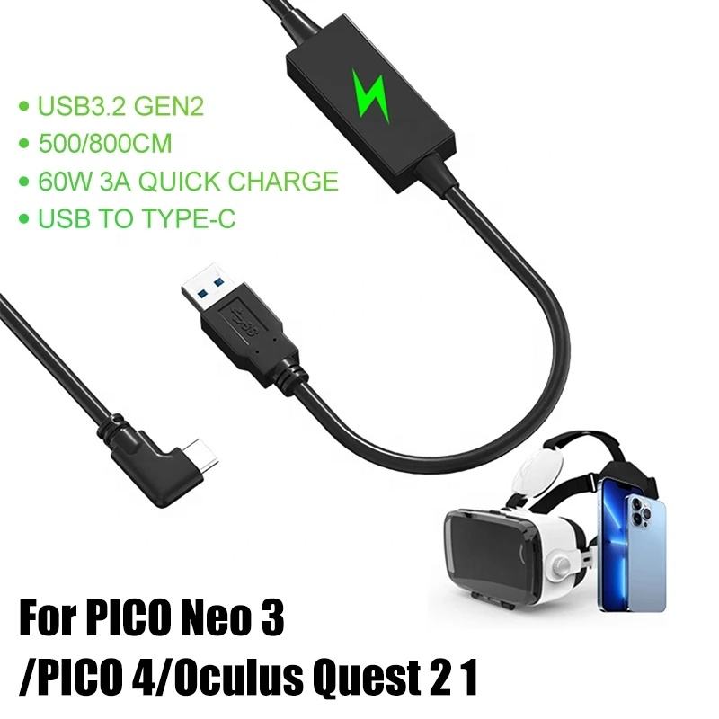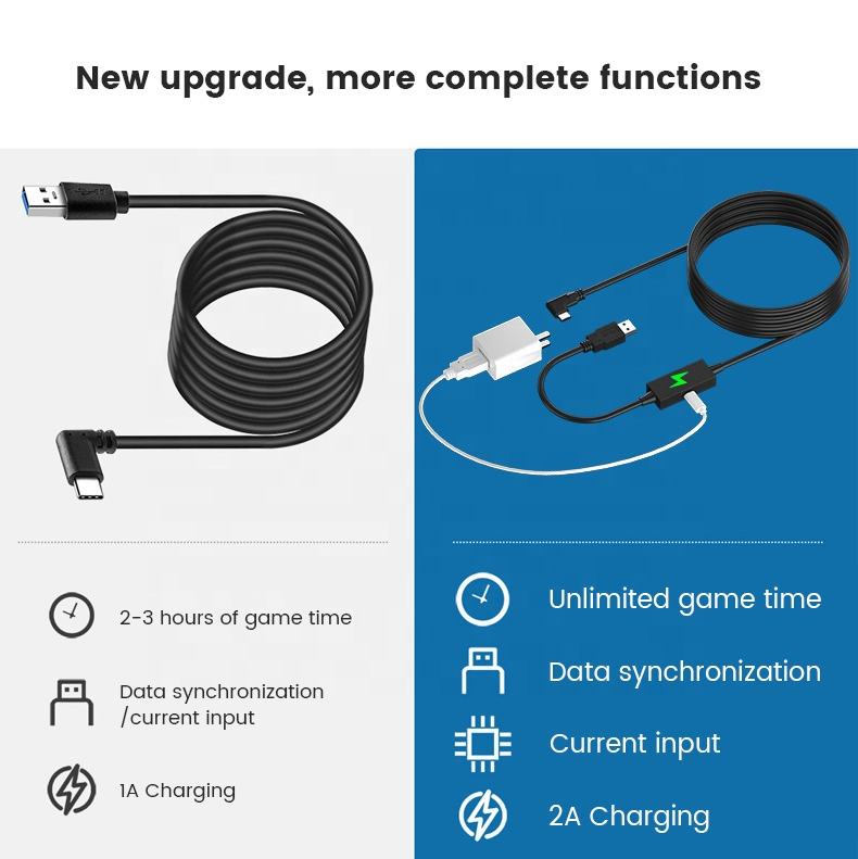 5M 16ft 5Gbps USB3.2 Gen2 USB-A vers USB type-c VR Link Cable avec Port de charge d'alimentation séparé pour Meta Quest Pro/PICO 3 4