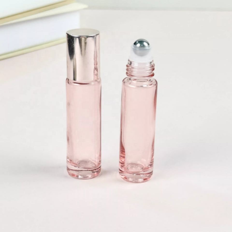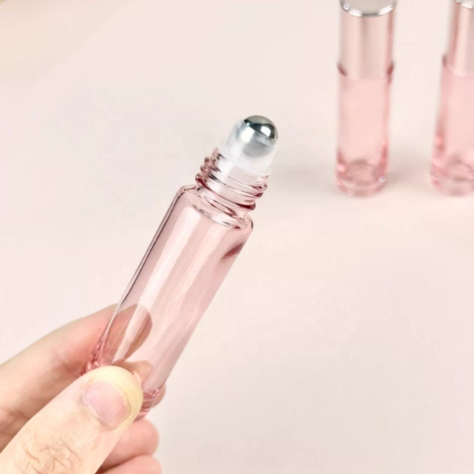 Flacon à bille en verre épais de 5 ml et 10 ml, couleur or rose, vide, pour parfum, huile essentielle, avec bille en acier inoxydable