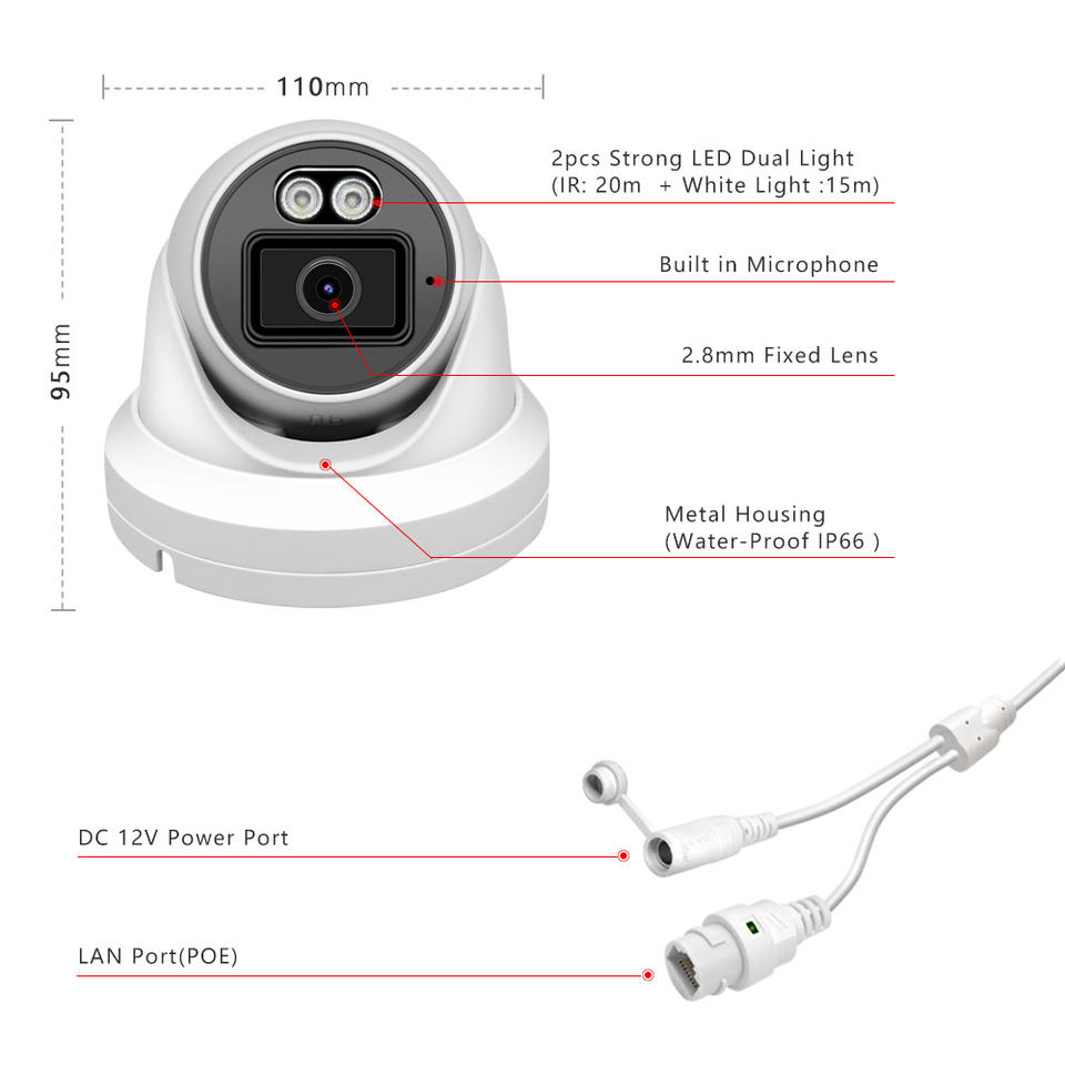 Caméra de sécurité IP/réseau 5MP/8MP/12MP avec Vision nocturne étanche Smart Dual Light Alarm Détection humanoïde pour la sécurité à domicile