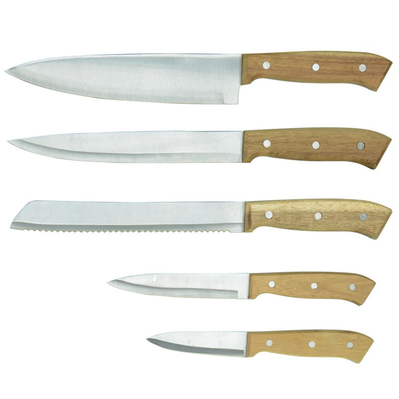 Ensemble de 5 couteaux de cuisine professionnels en acier inoxydable avec manche en bois pour la cuisine à domicile